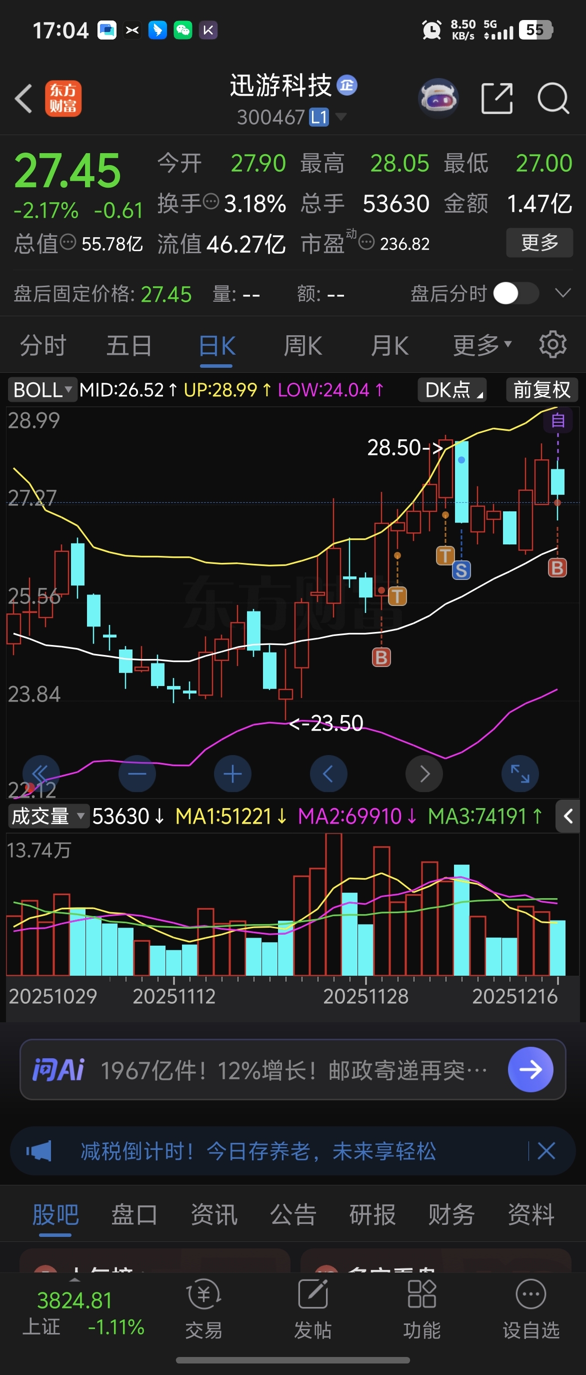 $迅游科技(SZ300467)$ 今天回来了,明后天看主力选择方向,向上空间无限向下及时止损