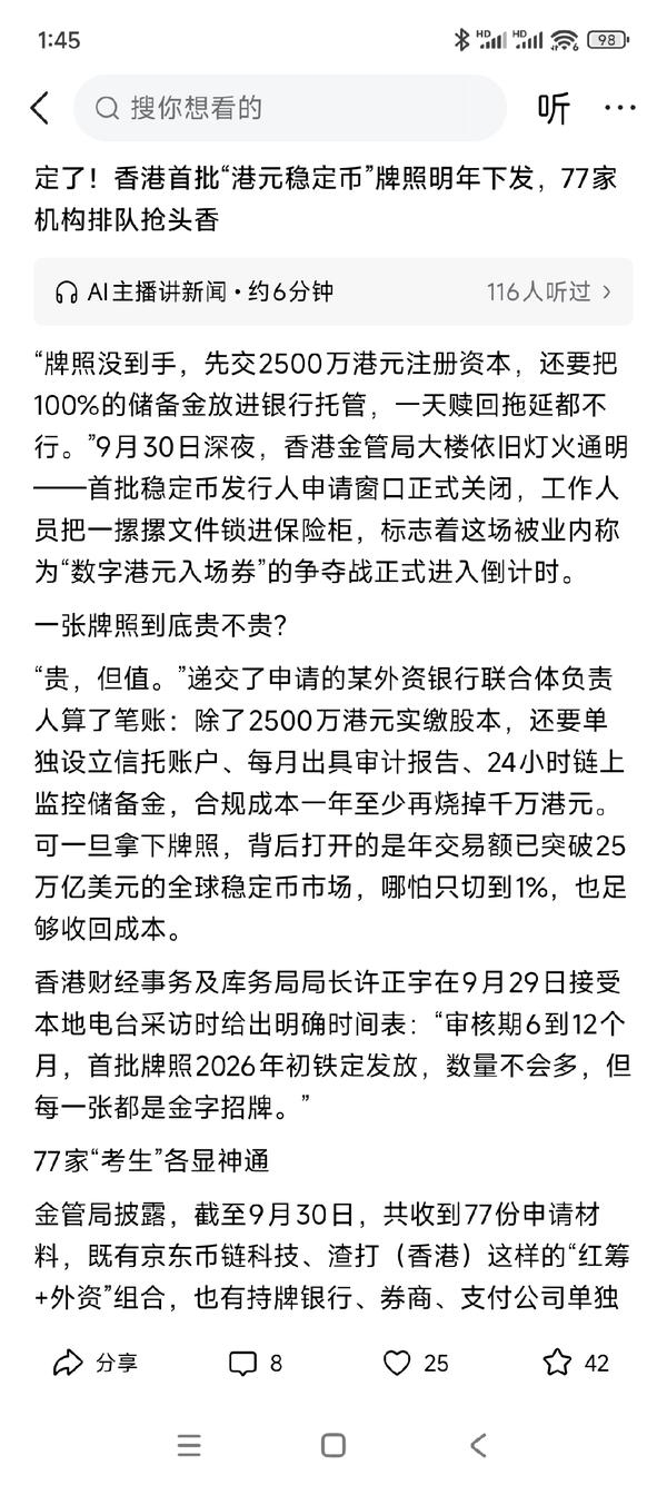 $四方精创(SZ300468)$ 77家稳定币申请机构,明年1月发牌。10-12月大概率有大的波动,大家忍一忍吧