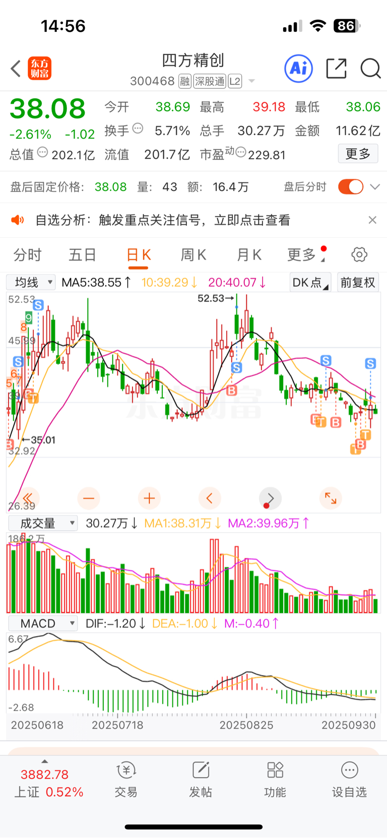 $四方精创(SZ300468)$ 四方买过好多次,每次多能让我安全出来,虽然我现在没有持仓你,但我依然看好你!