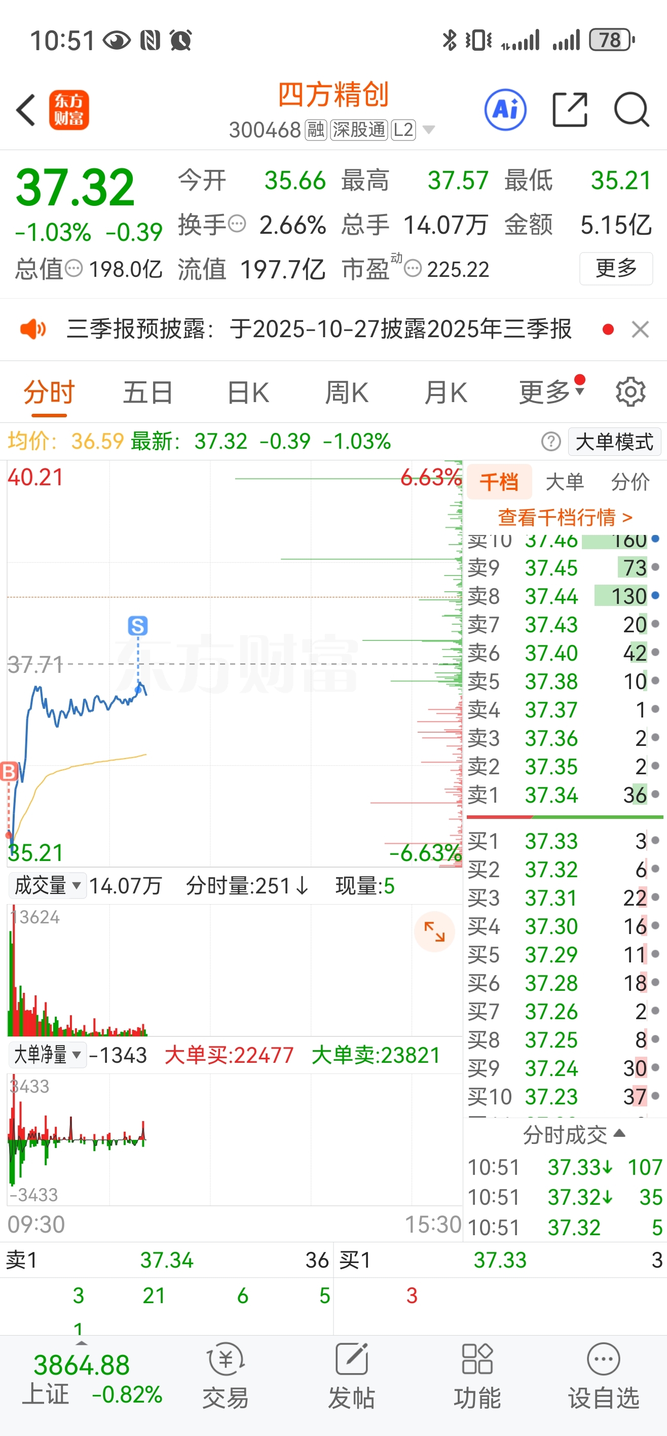 $四方精创(SZ300468)$ 谢谢给做T机会,今天晚上吃肉