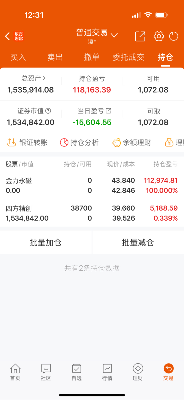 100万炒股的28天,今日A股三大指数集体跳空高开,但开盘后分化明显加剧,三大金融拼命护盘上证指数,而创业板因科技股领跌出现跳水下跌,导致盘面呈现高开低走套人的走势。祝点赞的朋友股票长虹!#炒股日记# $四方精创(SZ300468)$ $金力永磁(SZ300748)$