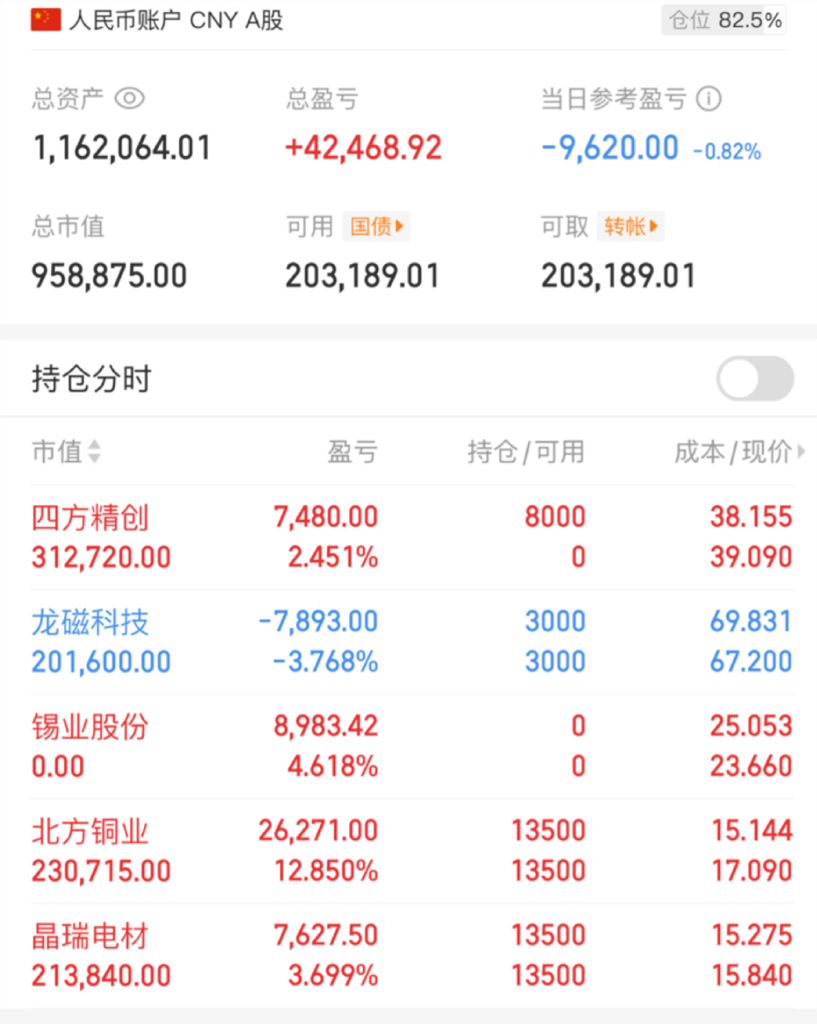 76万一年翻2倍第四十二天接入继续持有继续持有锡业股份卖出晶瑞电材继续持有当所有