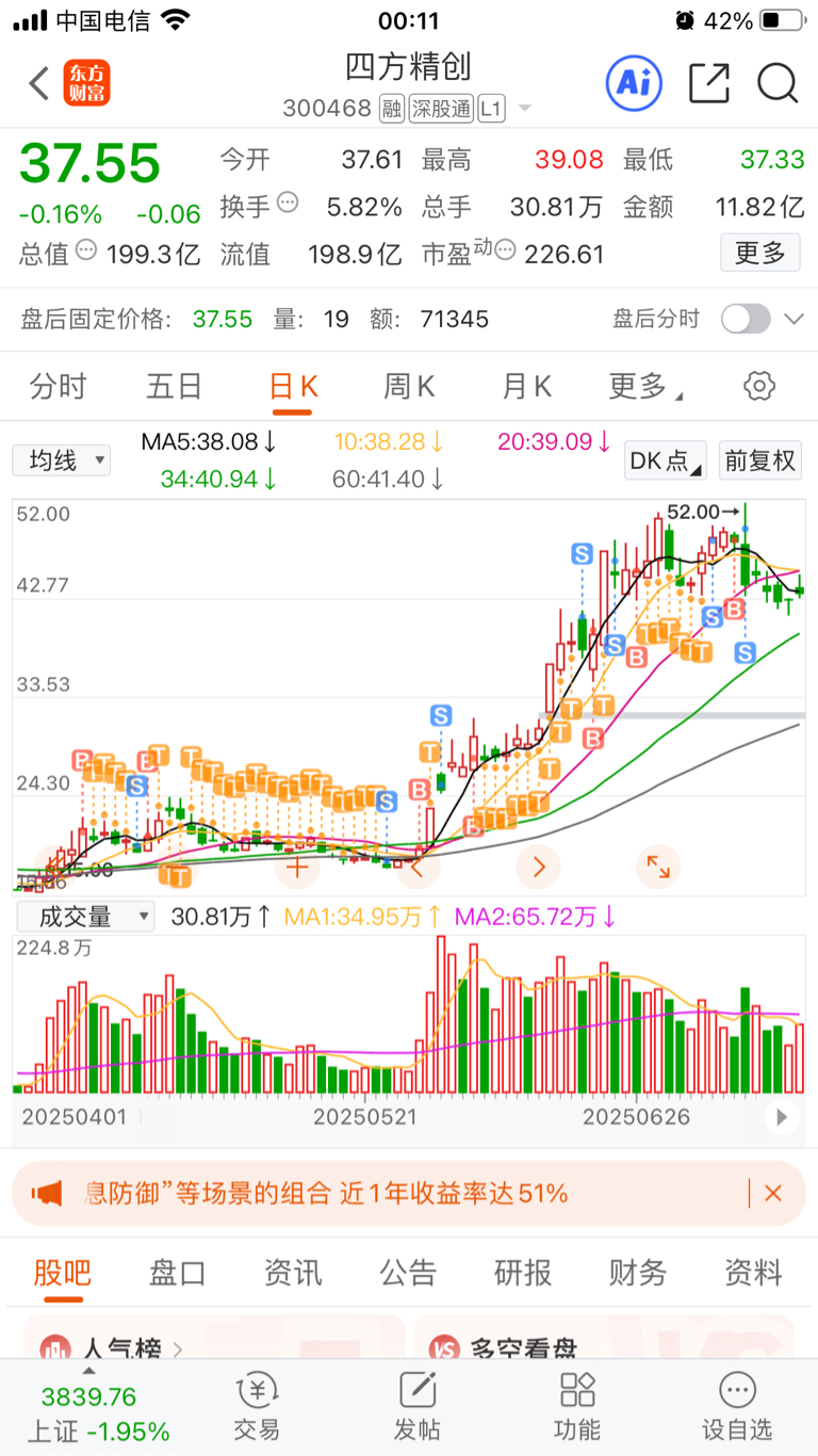 $四方精创(SZ300468)$ 稳定币的祖宗,35元是极端行情的底线,不允许跌破,年底上80没问题,下周上车