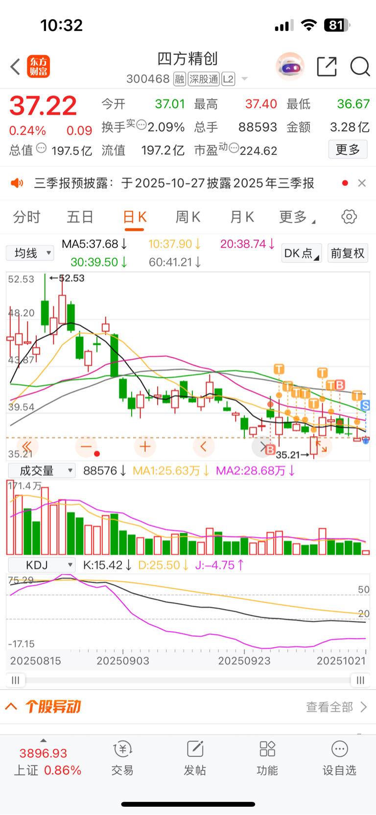今天下定决心清仓了。40.5块买的,做T成本到37。白白守了3周。主要就是昨天走