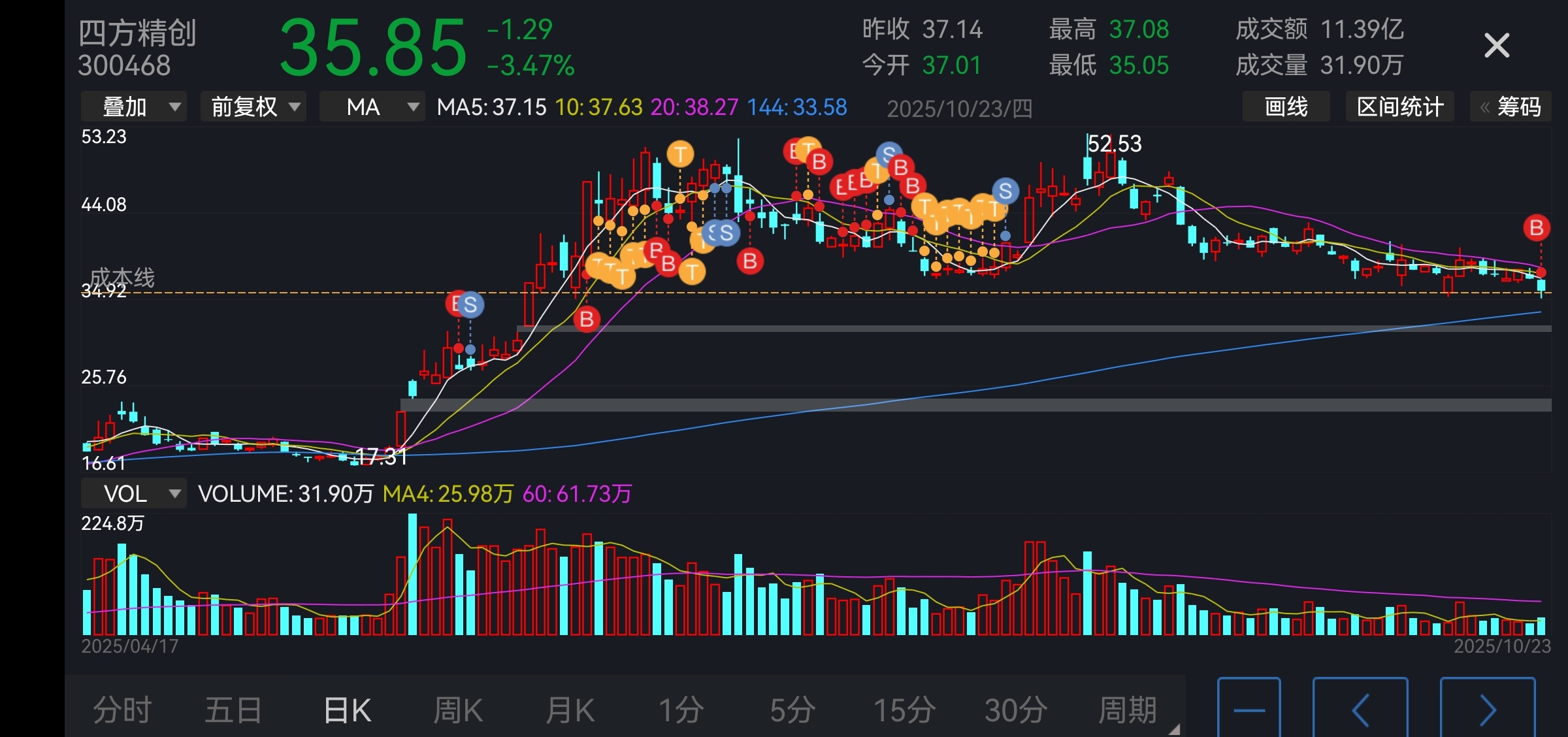 $四方精创(SZ300468)$ 价格设置提醒了,到一阶段脚底板价格了,35.5建个底仓,如果支撑不住,26见了对你还是很有感情的,之前一直主玩你,跨境和稳定币快要调整到位了,弄个先手