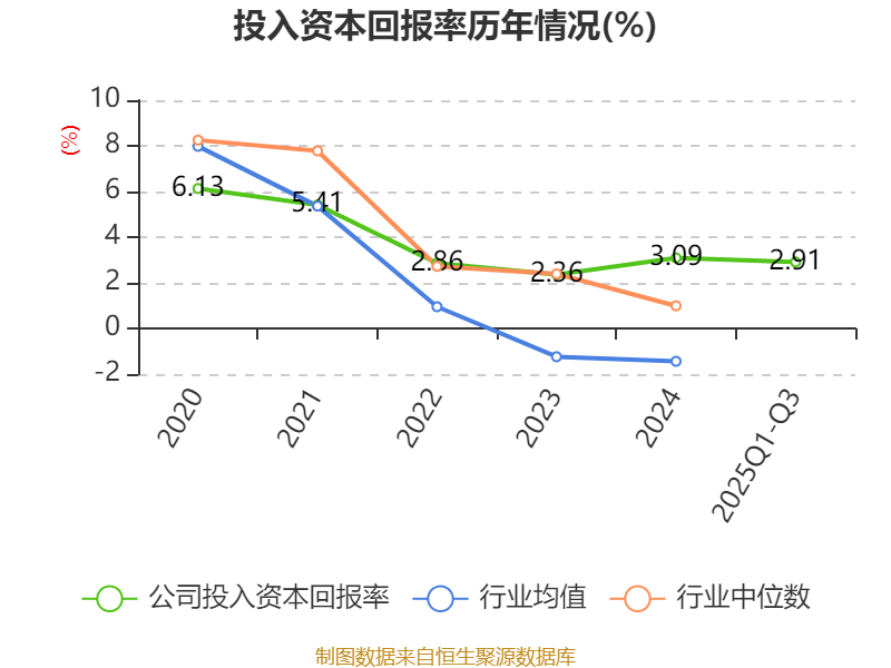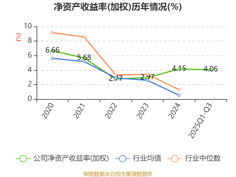 盈利能力方面, 2025年前三季度公司加权平均净资产收益率为4.06%,同比上升0.8个百分点。公司2025年前三季度投入资本回报率为2.91%,较上年同期上升0.48个百分点。