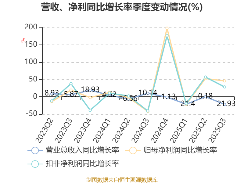 资产重大变化方面,截至2025年三季度末,公司货币资金较上年末减少9.25%,占公司总资产比重下降4.63个百分点;应收票据及应收账款较上年末增加26.86%,占公司总资产比重上升2.15个百分点;存货较上年末增加95.95%,占公司总资产比重上升1.59个百分点;固定资产较上年末增加4.15%,占公司总资产比重上升1.27个百分点。