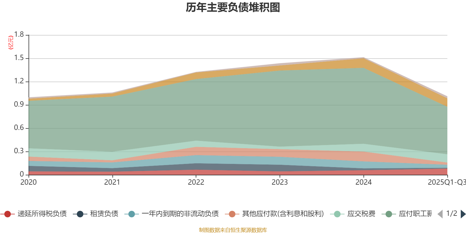 负债重大变化方面,截至2025年三季度末,公司应付职工薪酬较上年末减少37.38%,占公司总资产比重下降1.95个百分点;其他应付款(含利息和股利)较上年末减少76.77%,占公司总资产比重下降0.54个百分点;一年内到期的非流动负债较上年末减少56.21%,占公司总资产比重下降0.28个百分点;递延所得税负债较上年末增加37.36%,占公司总资产比重上升0.13个百分点。
