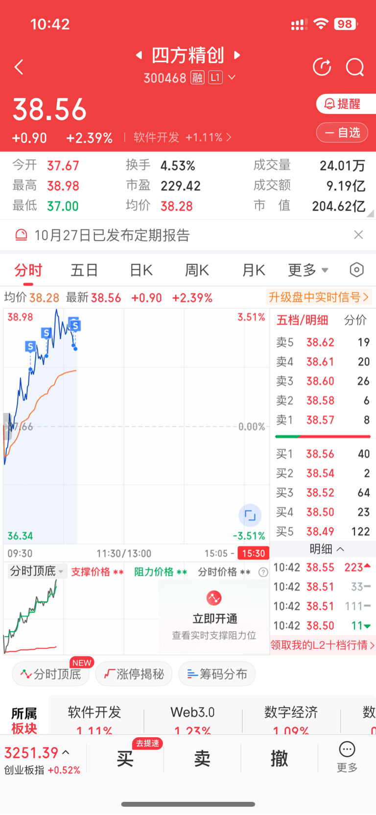 $四方精创(SZ300468)$ 卖了2万股留个底仓