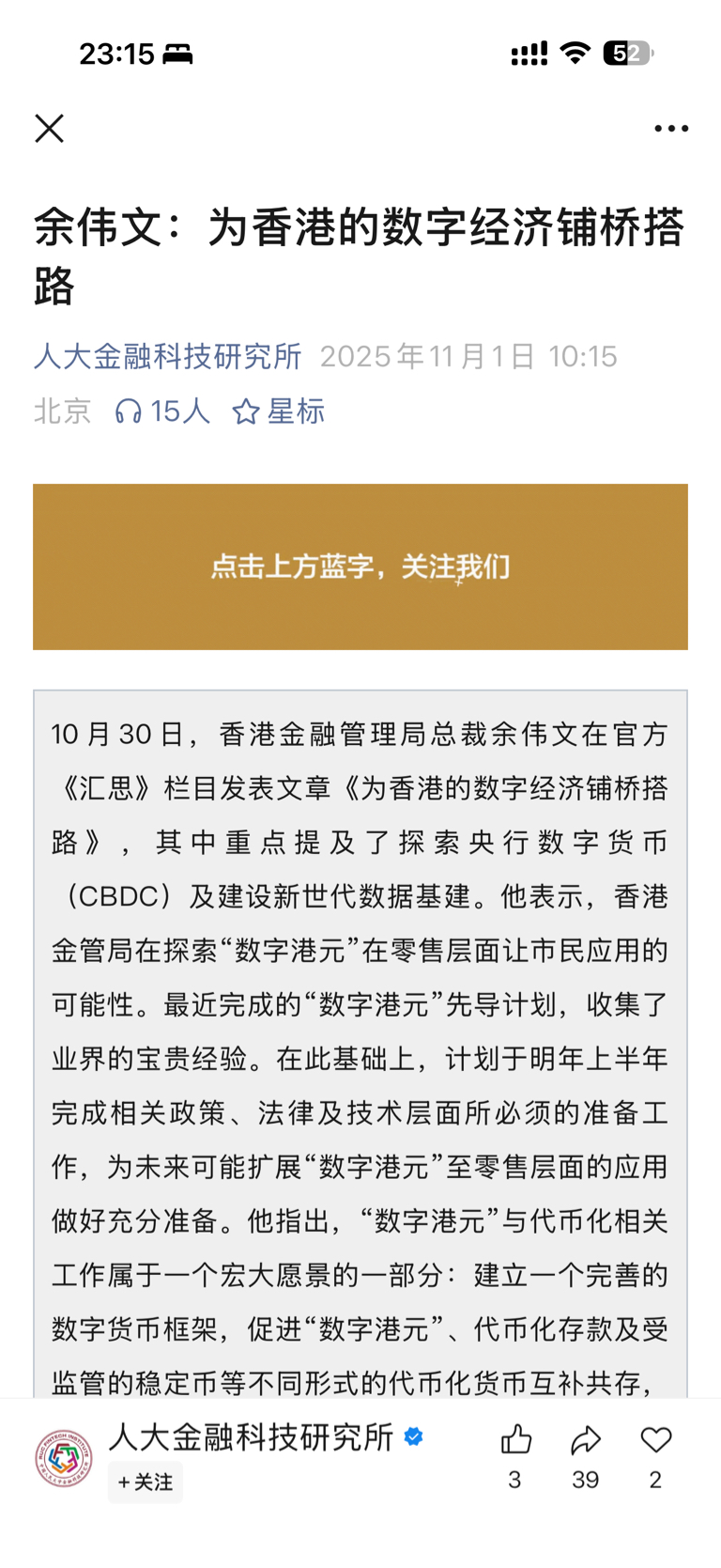 $四方精创(SZ300468)$ 金管局大佬说明年扩展到零售层面数字港元