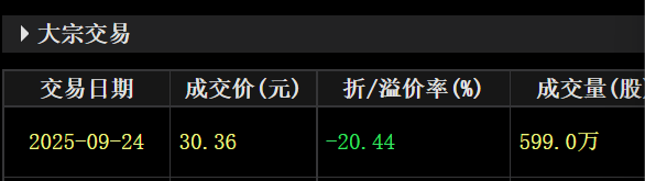 599万股大宗交易折价21%30元的价格所以30再跌破不跑也得跑
