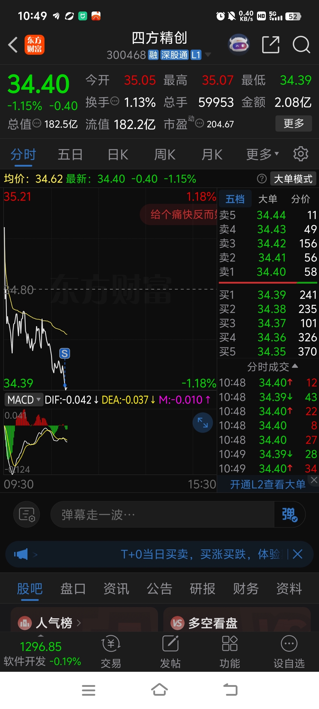 $四方精创(SZ300468)$ 亏了几万走了,一点起色没有,最高点48进,最低点34.4走,纯韭菜一枚
