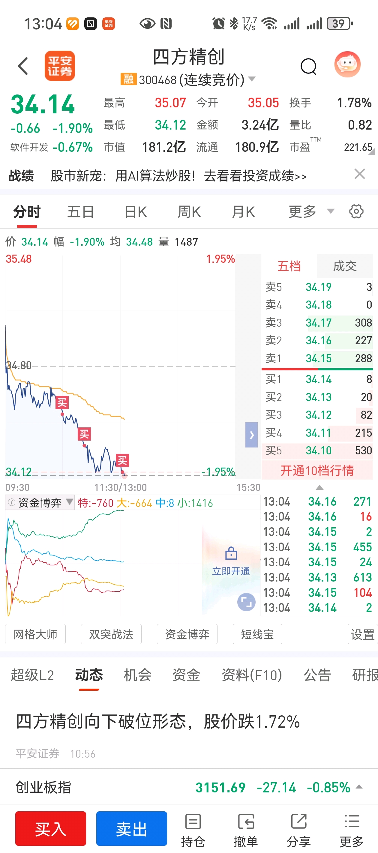 $四方精创(SZ300468)$ 怪我,一买就暴跌