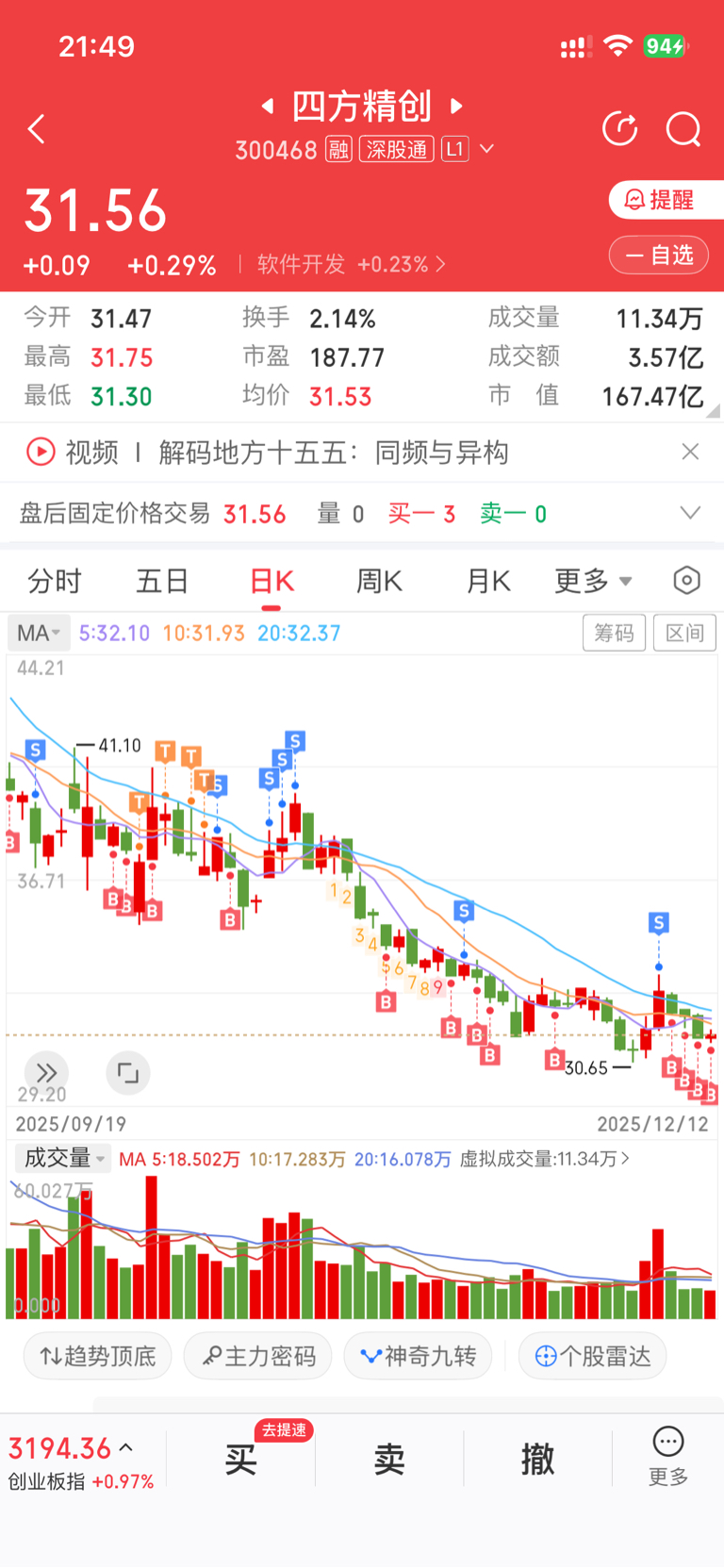 $四方精创(SZ300468)$ 我又来了,看你怎么跌,再跌再买,不跌也买。