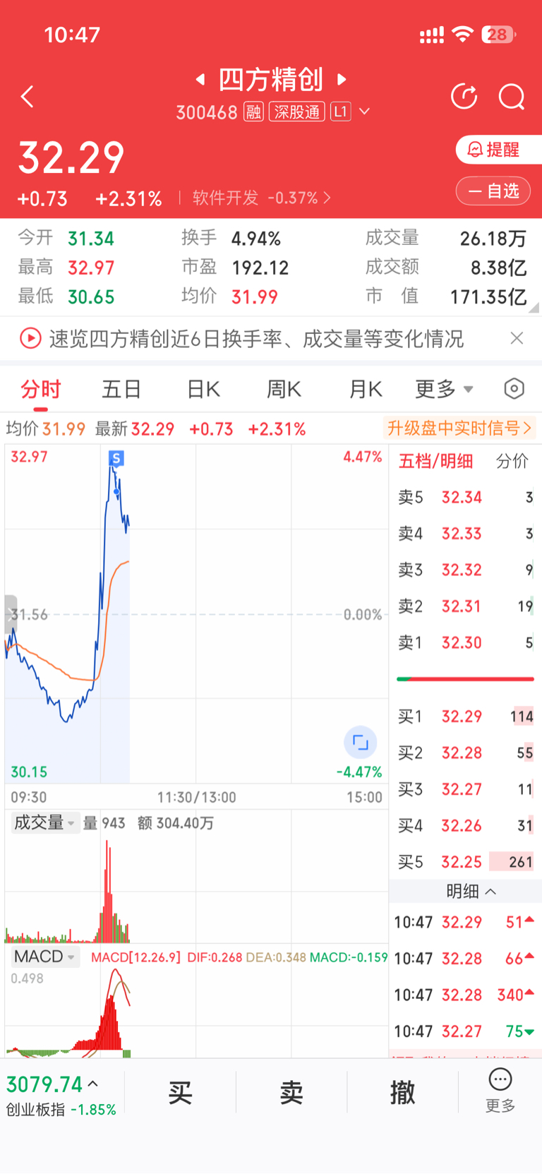 $四方精创(SZ300468)$ 留下的兄弟发大财,我清仓先走了!