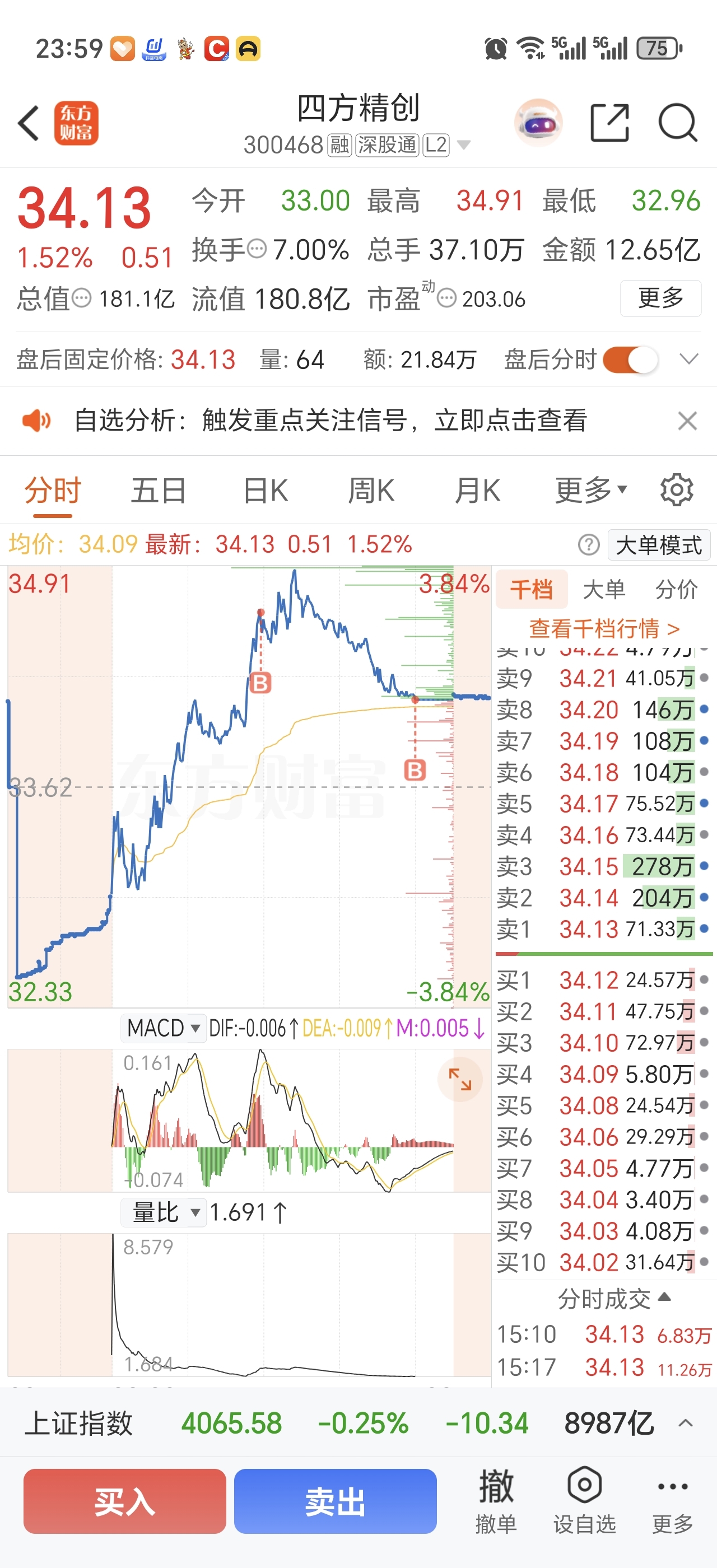 $四方精创(SZ300468)$ 尾盘梭哈了,准备长期在里面做t了,我觉着越是管理严格,牌照越稳