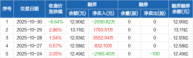 信息发展:融资净偿还2090.82万元,融资余额12.9亿元(10-30)