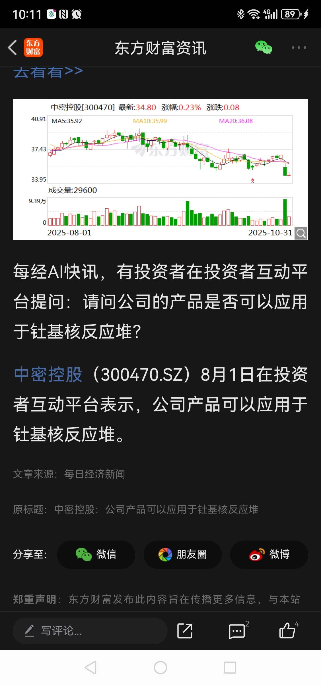 $中密控股(SZ300470)$ 董秘唯一证实过的。