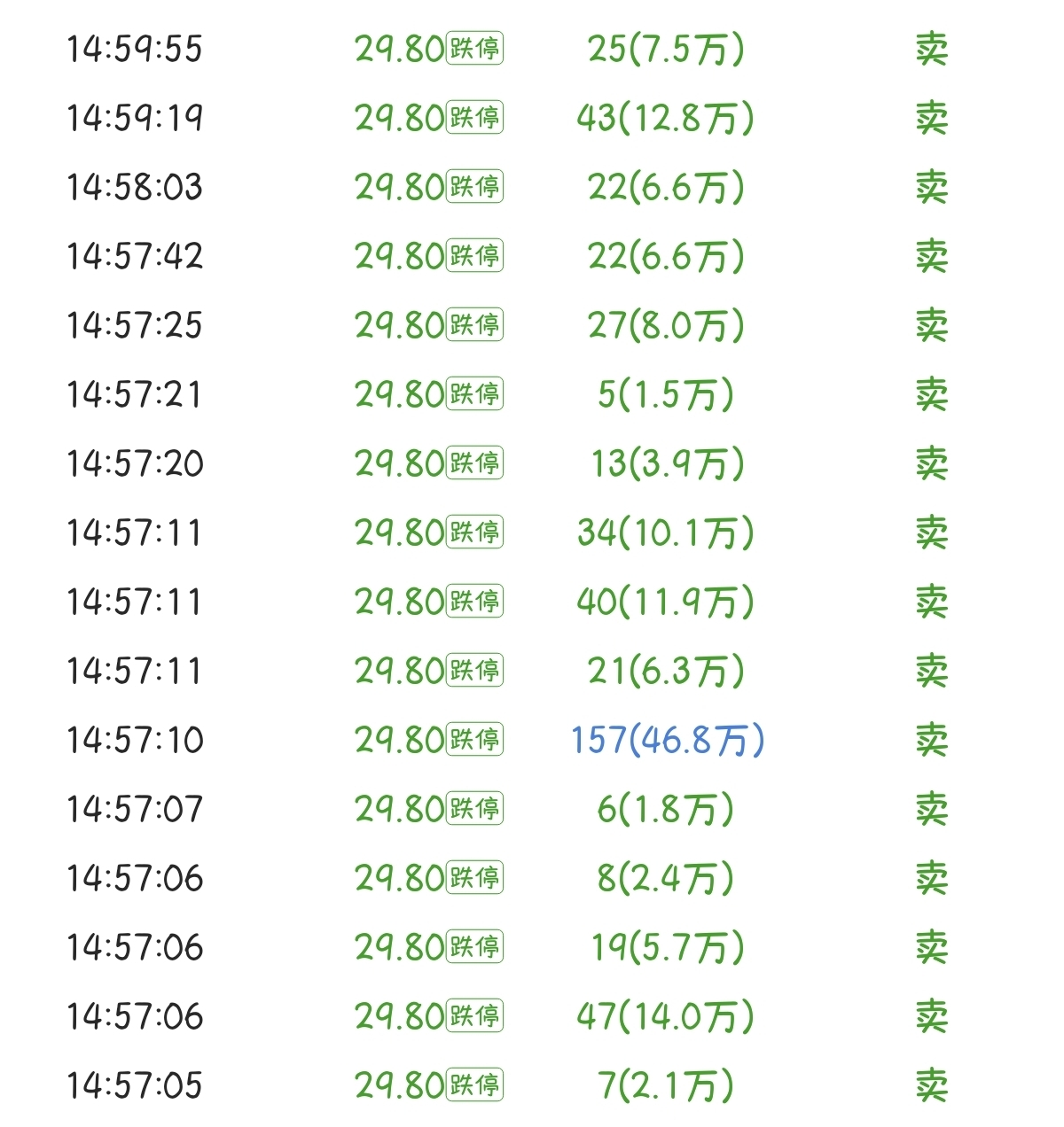 $中密控股(SZ300470)$ 尾盘3分钟打跌停单,盘中没有任何一笔跌停单,充分说明在操纵股价!