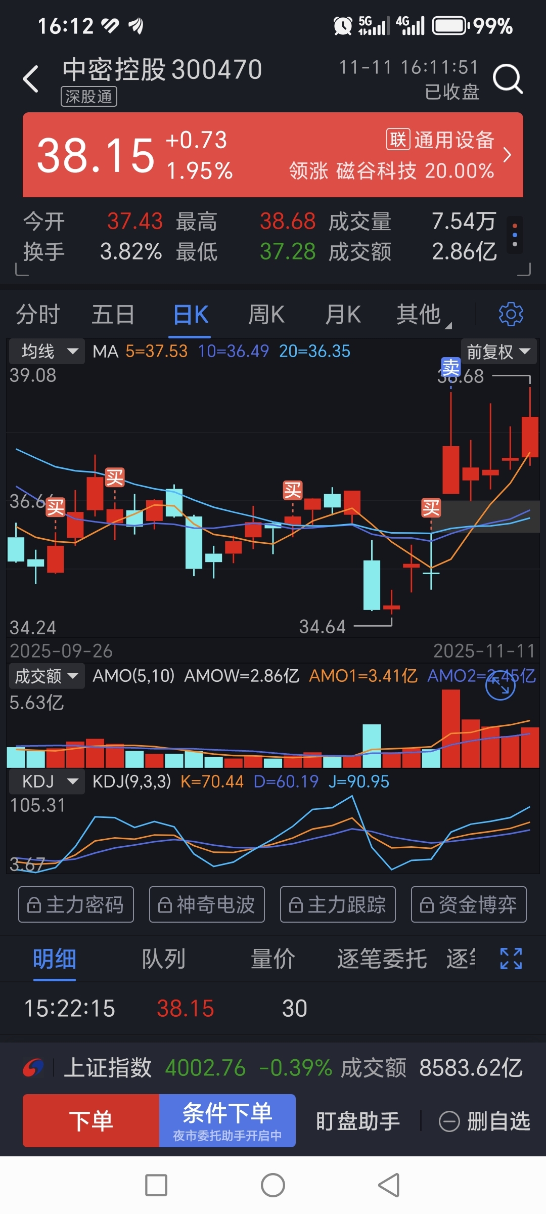 $中密控股(SZ300470)$ 只留了100股,跌到36元,再T你。