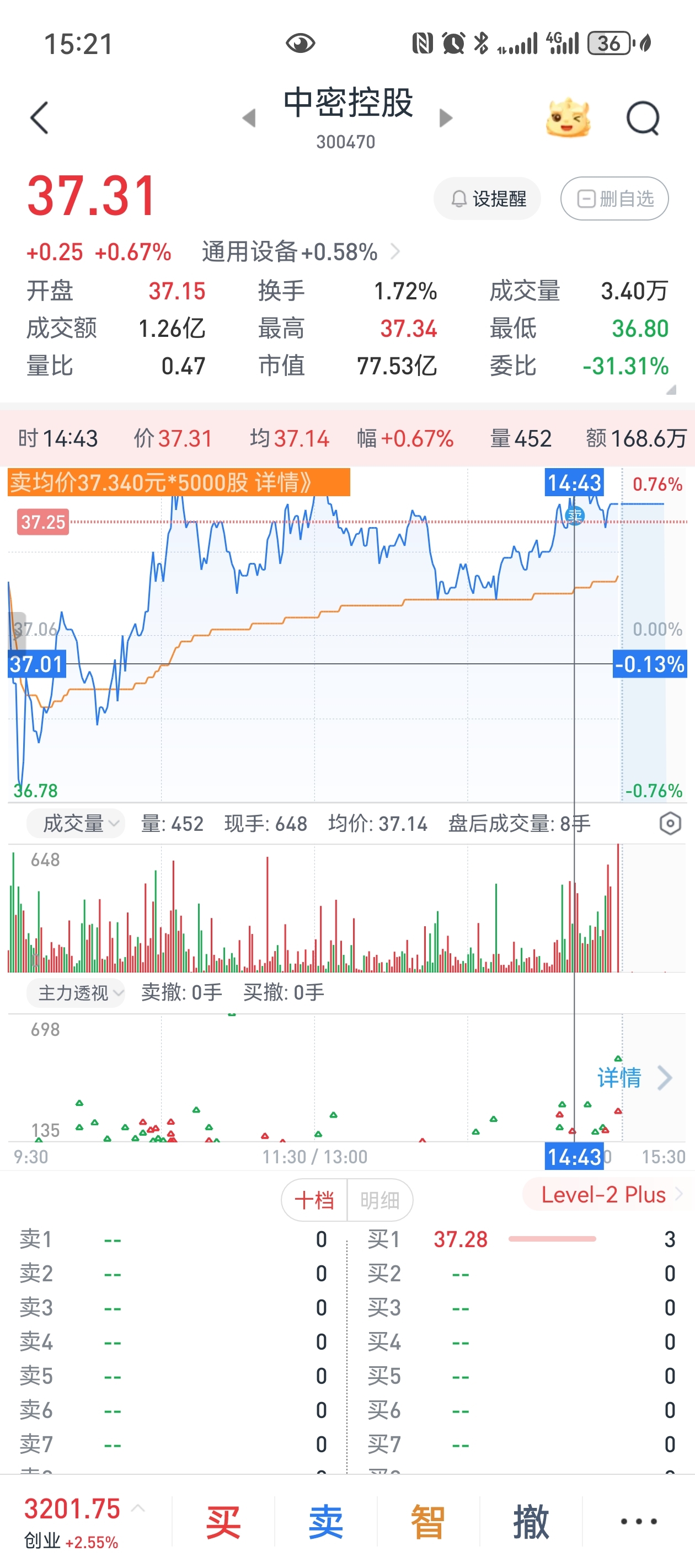 $中密控股(SZ300470)$ 今天都没爬上去,这段时间没戏唱了,底仓全清,等你36