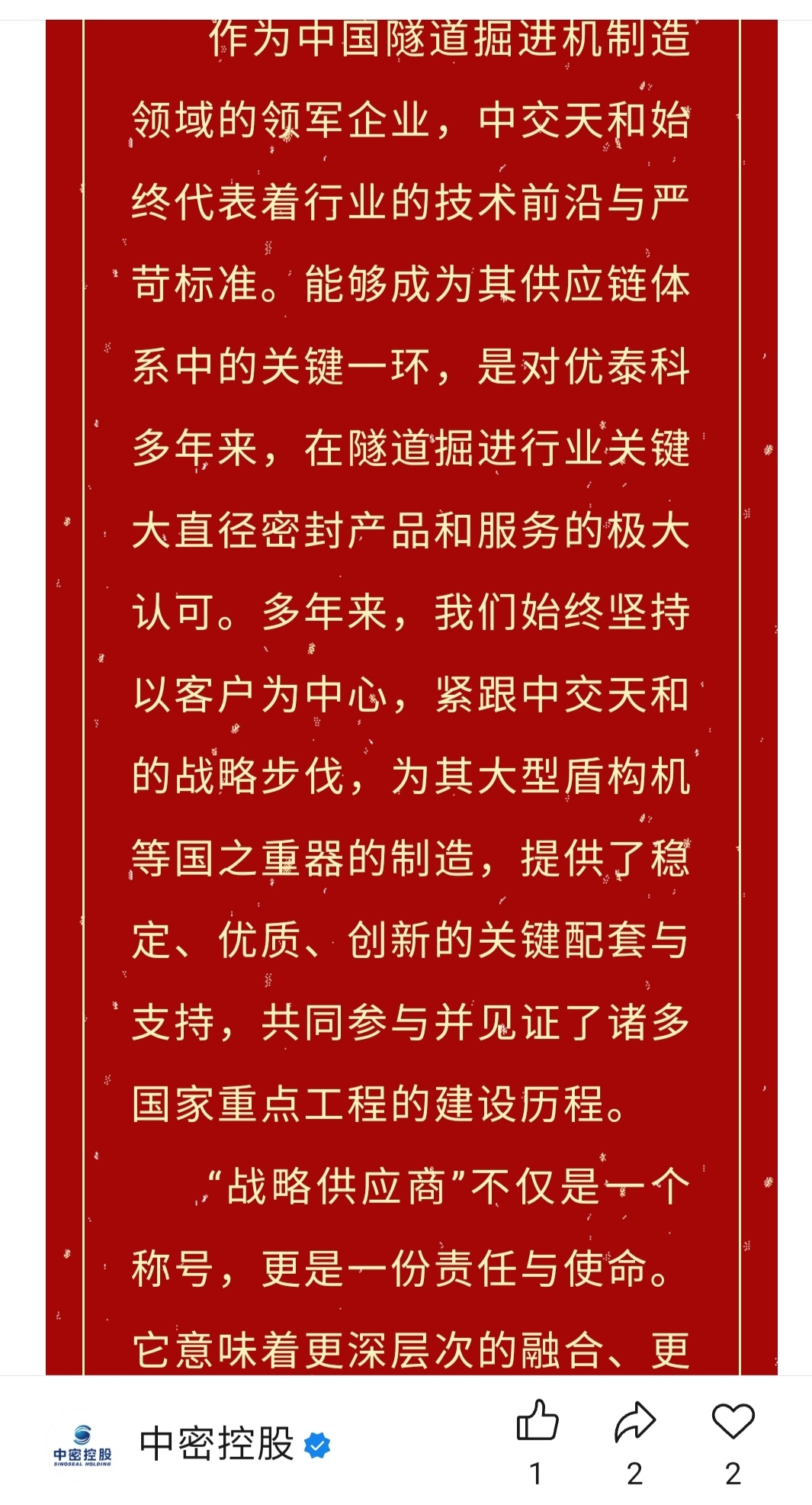 $中密控股(SZ300470)$ 这不就是涉及深地经济。不就是用国家自产的盾构机挖。不被国外卡脖子。自主可控!董秘啊董秘……隐藏太深