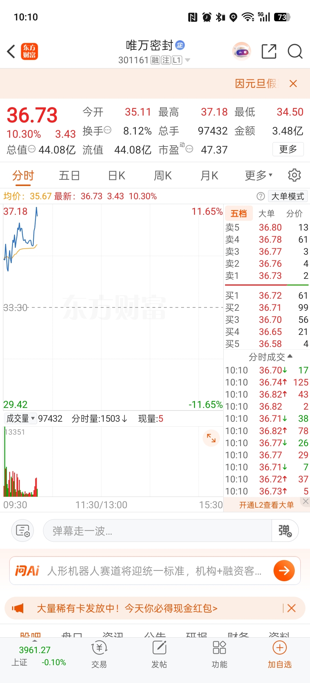 $中密控股(SZ300470)$ 唯万密封,密封头子