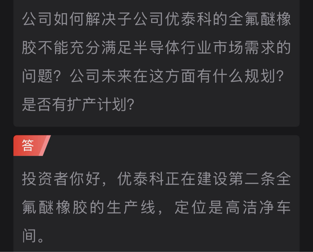 半导体需求大,子公司优泰科的全氟醚橡胶第二条生产线,正在紧张的建设中!!!