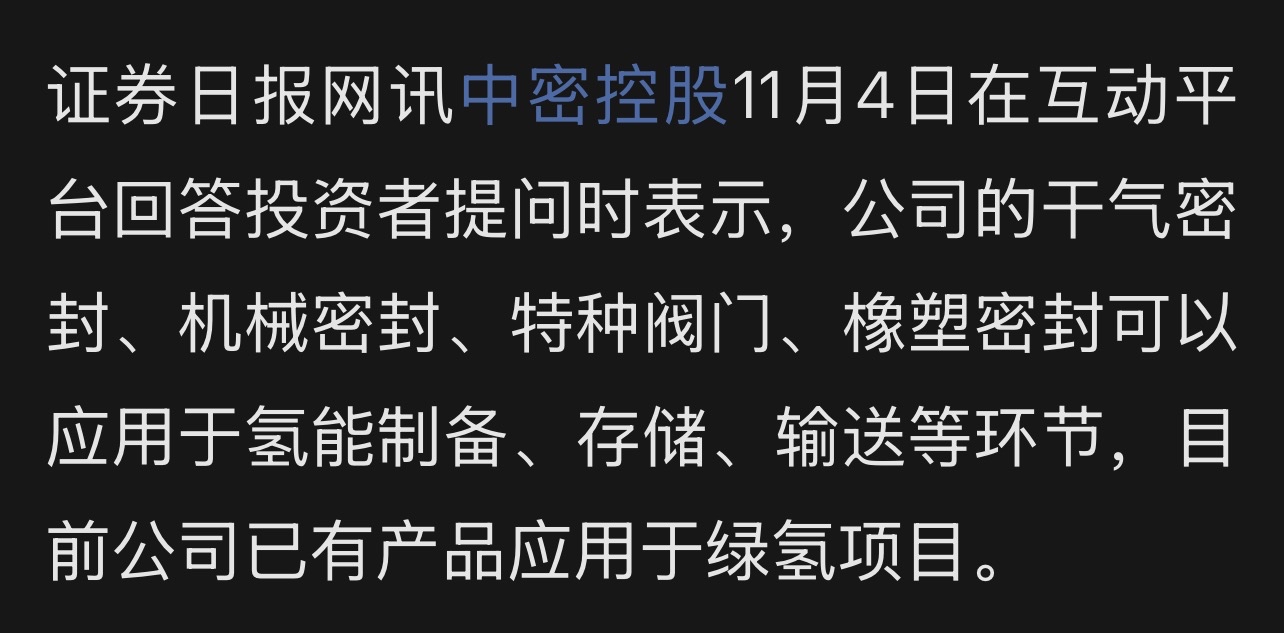 $中密控股(SZ300470)$ 已有产品应用于绿氢项目!