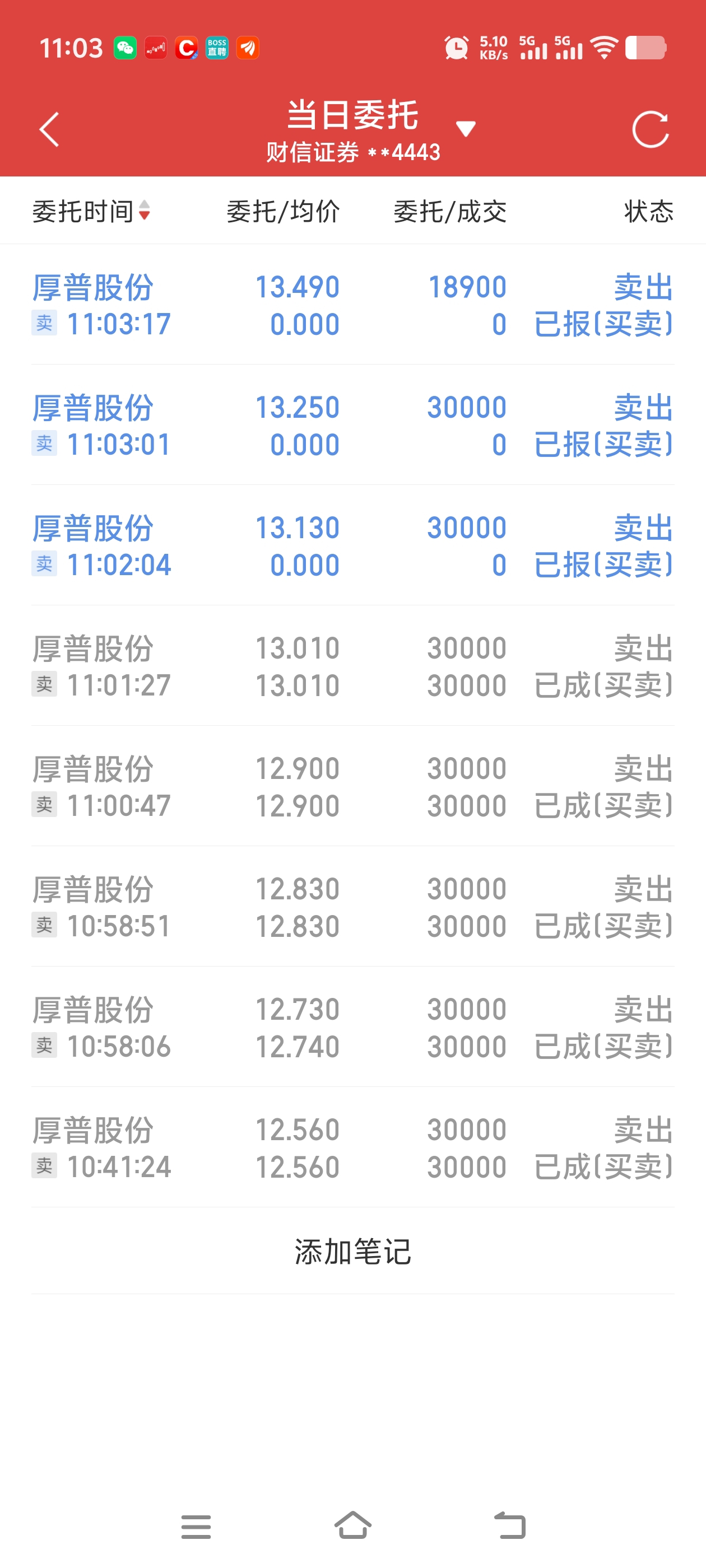 $厚普股份(SZ300471)$ 最后三单,两个账户清空,卖完过年了,祝留下的发财
