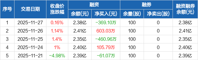 厚普股份:融资净偿还369.1万元,融资余额2.38亿元(11-27)