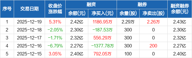 厚普股份:融资净买入1186.95万元,融资余额2.42亿元(12-19)