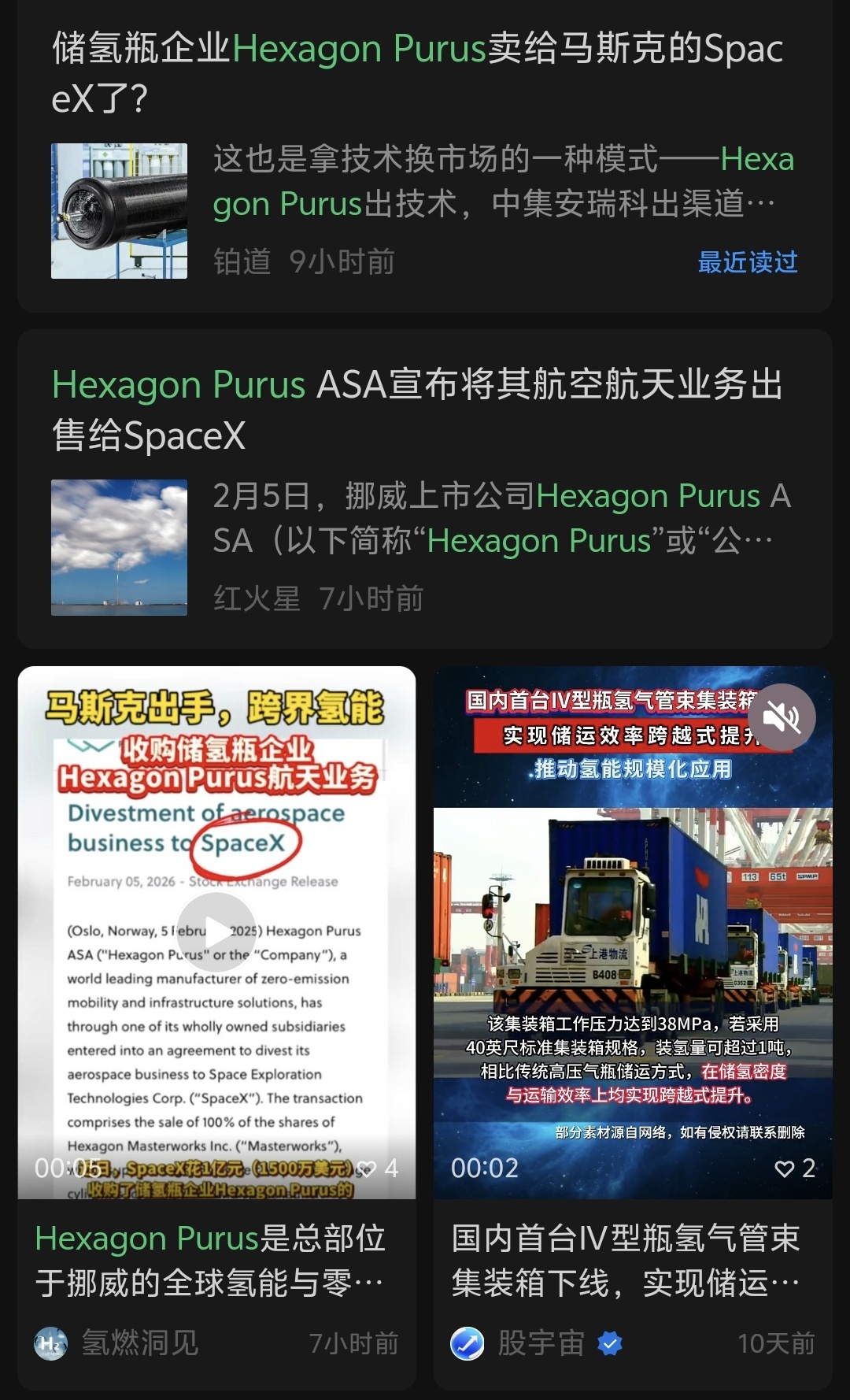 $厚普股份(SZ300471)$ 周一致远要起飞了应该,马斯克的SpaceX刚刚收购了一家干氢能储气瓶的公司,看看厚普能不能喝口汤。