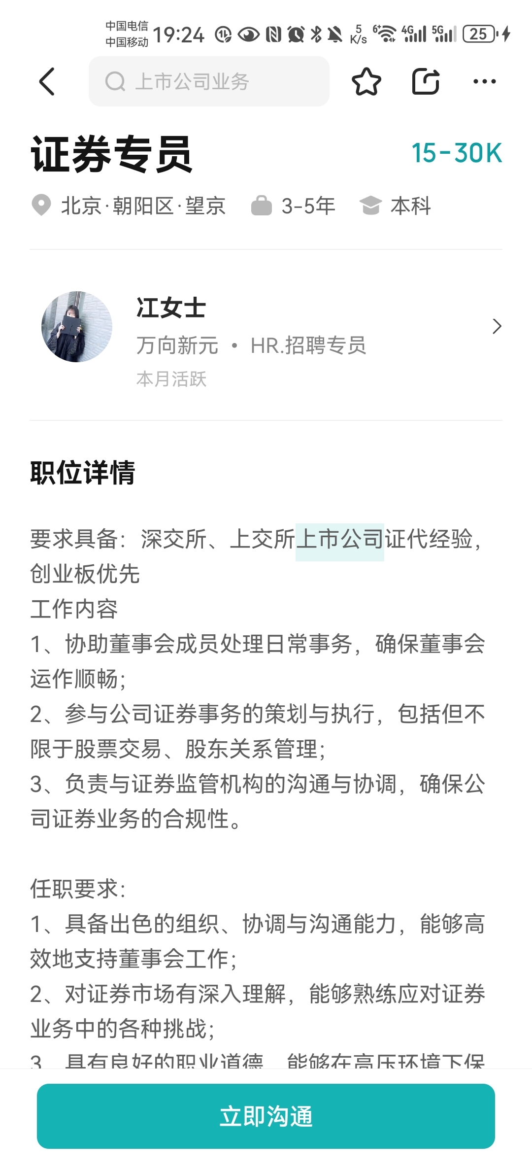 有没有经验的兄弟,招聘证券专员有没有释放什么信息