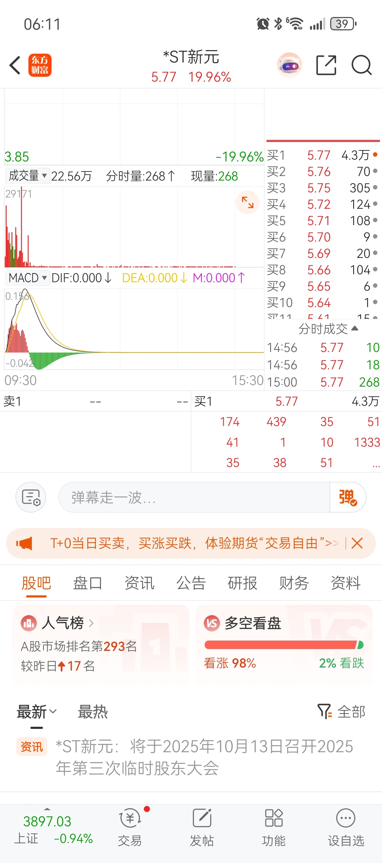 $*ST新元(SZ300472)$ 第一次看到百分之九十八看涨的!这情绪,你告诉我不涨?