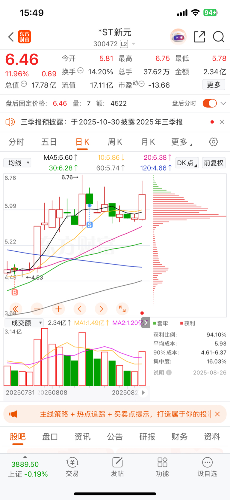 $*ST新元(SZ300472)$ 明天估计又是这种半死不活的,大涨了两天要调整了