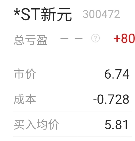 $*ST新元(SZ300472)$ 下午价格合适就加它1手,这个时候不能太保守