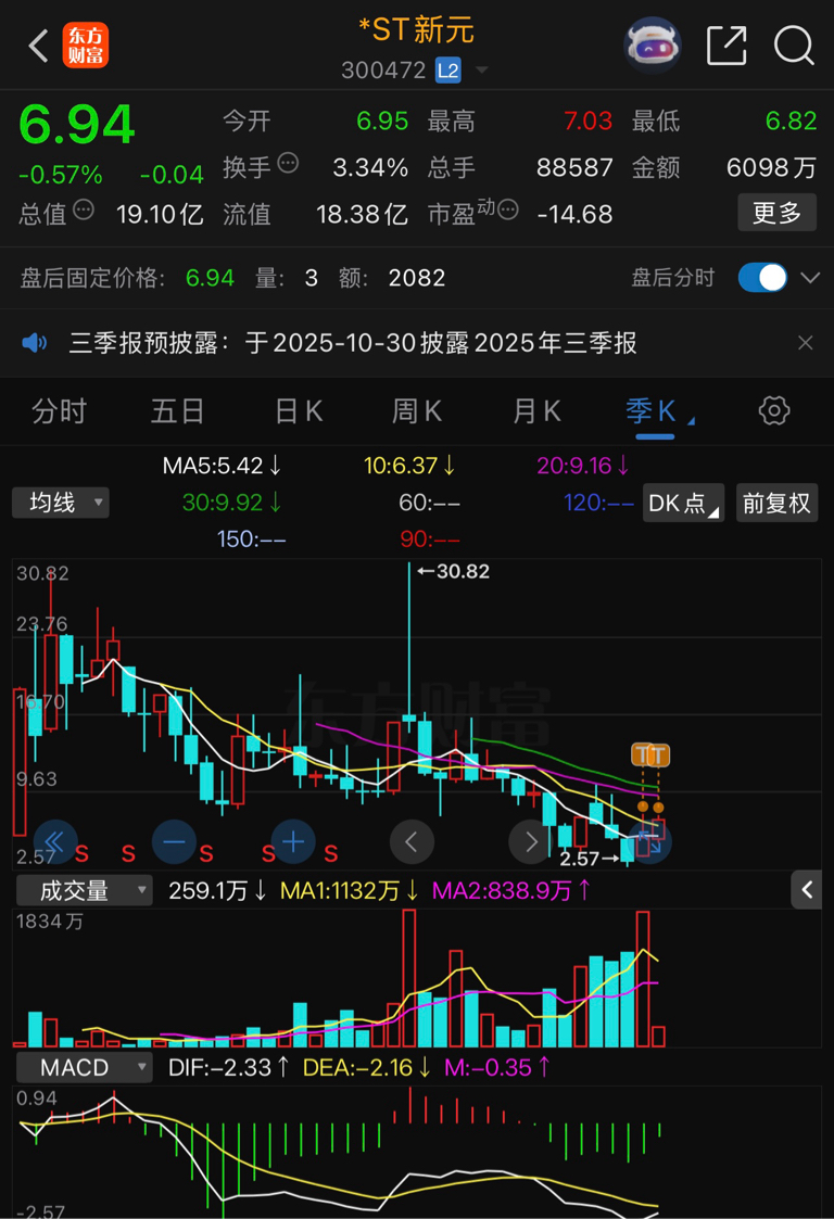 $*ST新元(SZ300472)$ 大利空落地,新元必将乘风而起!