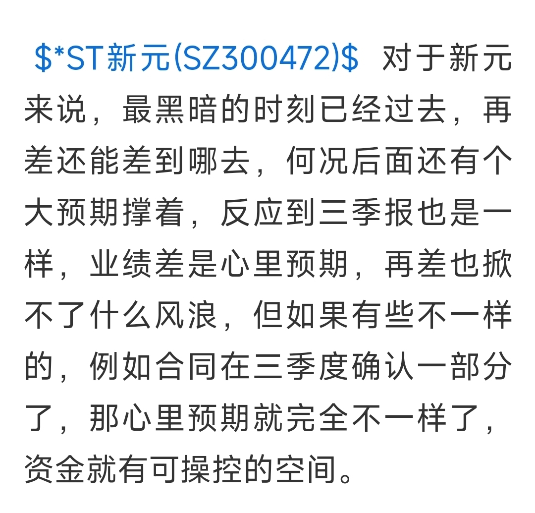 和我预测的一样,三季度会确认部分合同金额,新元的退市风险基本上已解除,还是那句话