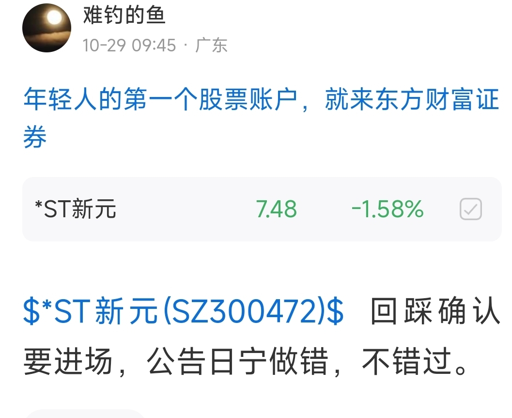 温馨提示: 1.根据《证券法》规定,禁止编造、传播虚假信息或者误导性信息,扰乱证券市场;2.用户在本社区发表的所有资料、言论等仅代表个人观点,与本网站立场无关,不对您构成任何投资建议。用户应基于自己的独立判断,自行决定证券投资并承担相应风险。《东方财富社区管理规定》