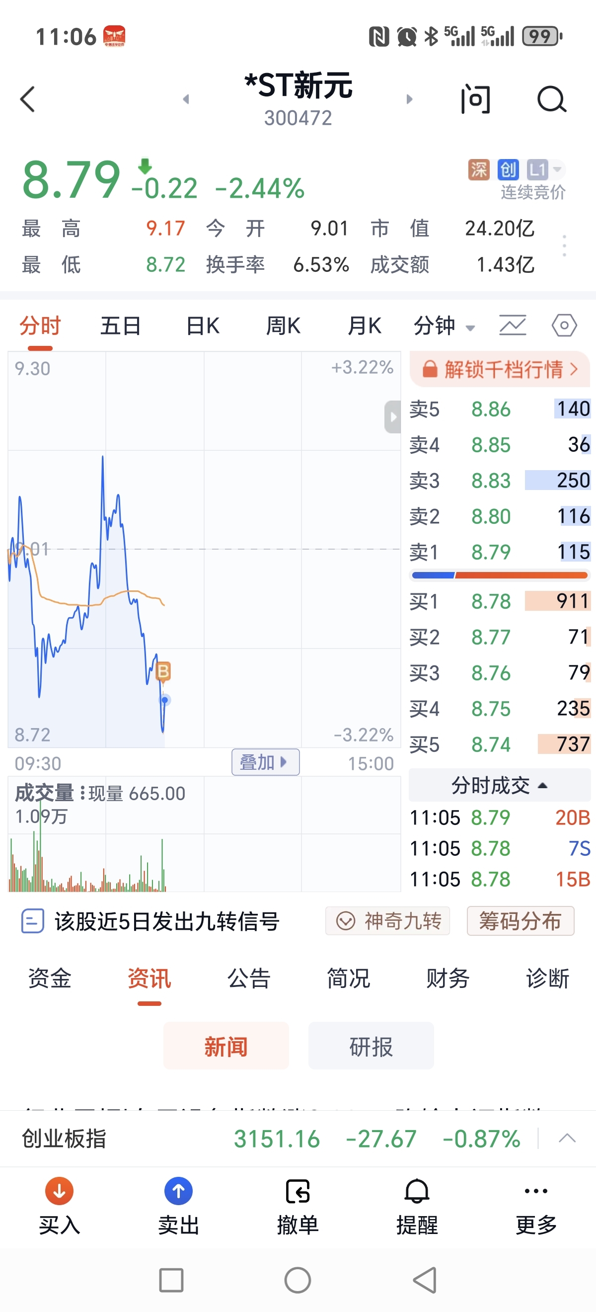 $*ST新元(SZ300472)$ 8.73元大胆加仓。