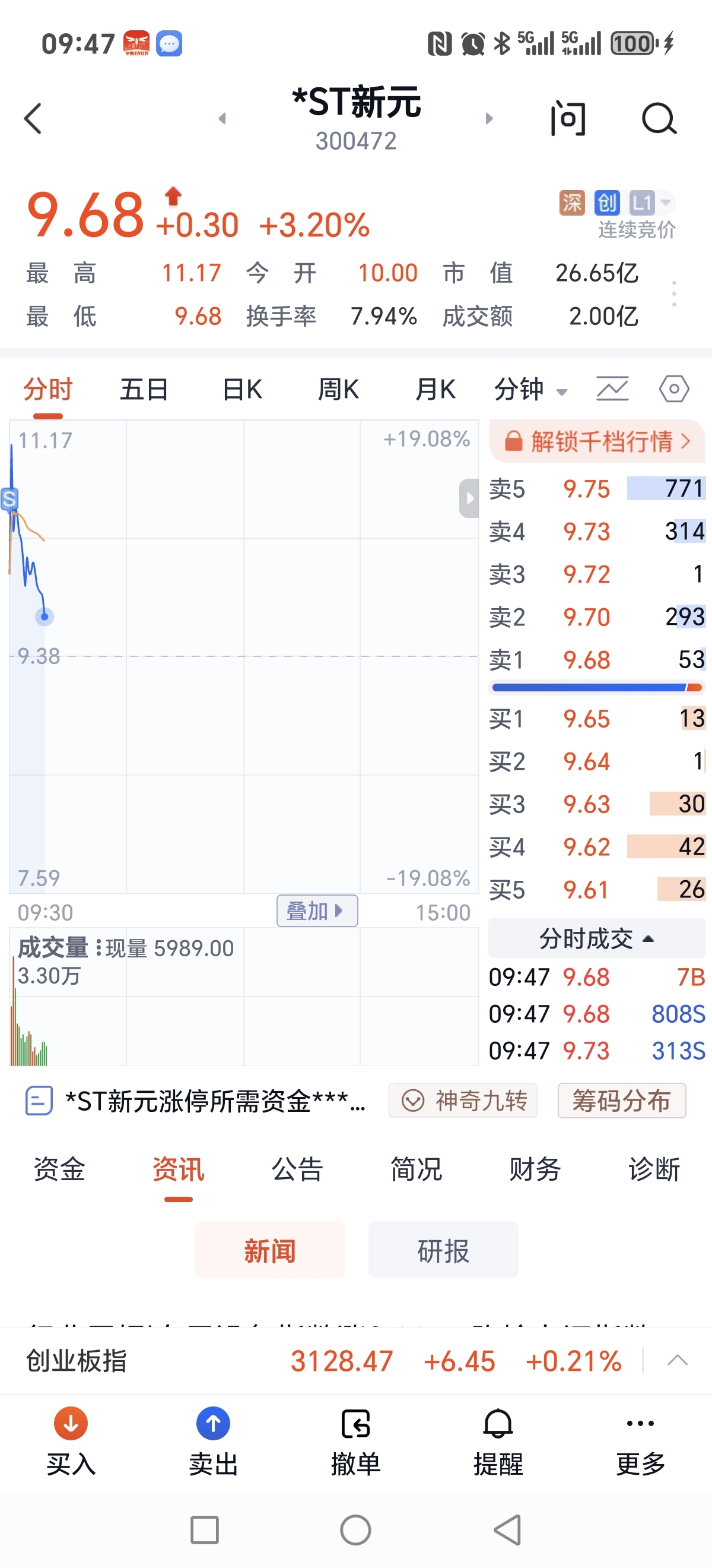 $*ST新元(SZ300472)$ 竞价全清了,知足吧。