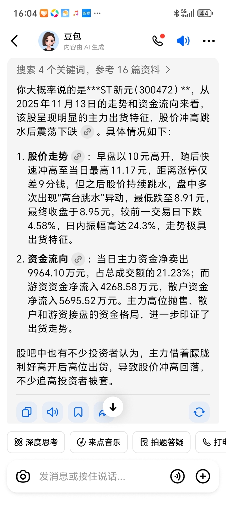 $*ST新元(SZ300472)$ 主力出货了跑了8太多资金了
