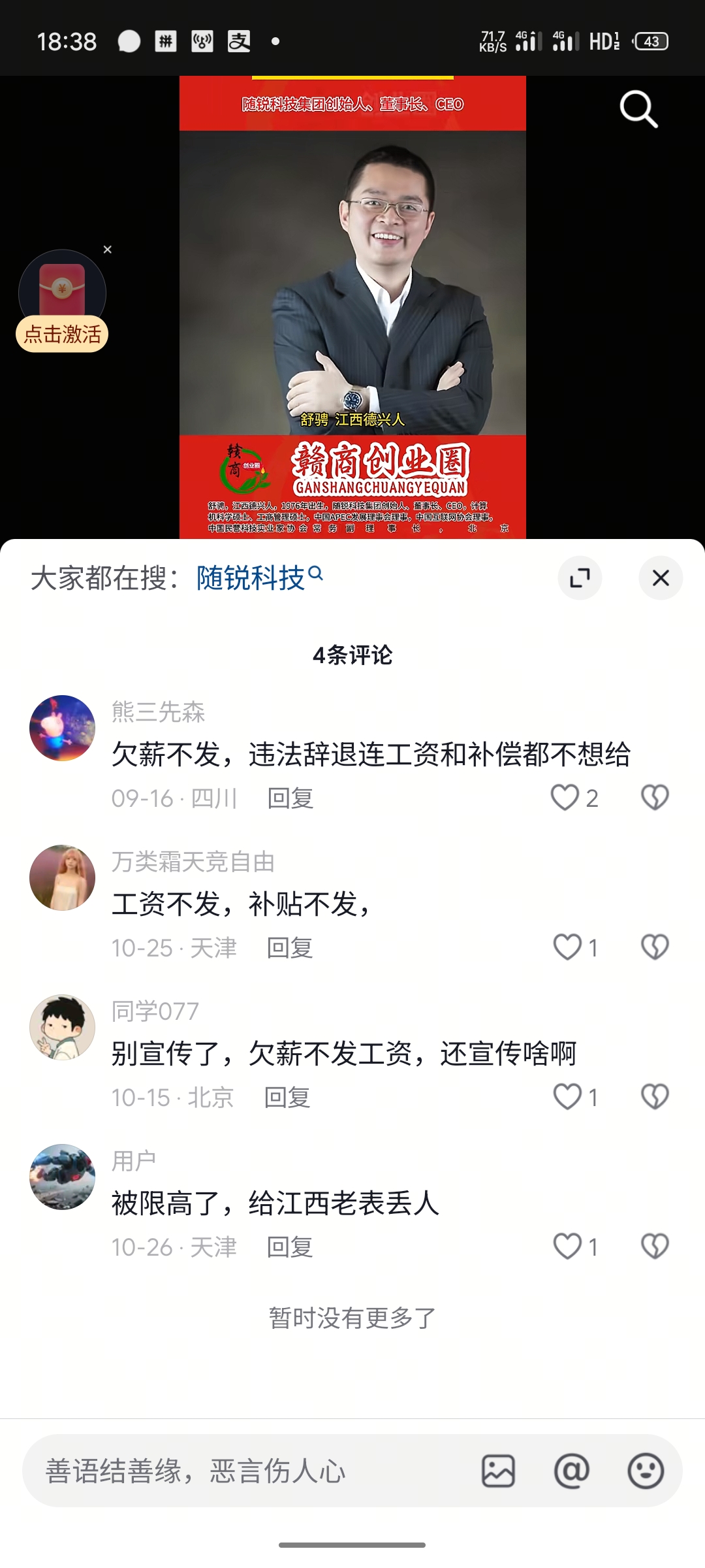 $*ST新元(SZ300472)$ 抖音一搜,怎么都是说随锐科技欠薪的视频