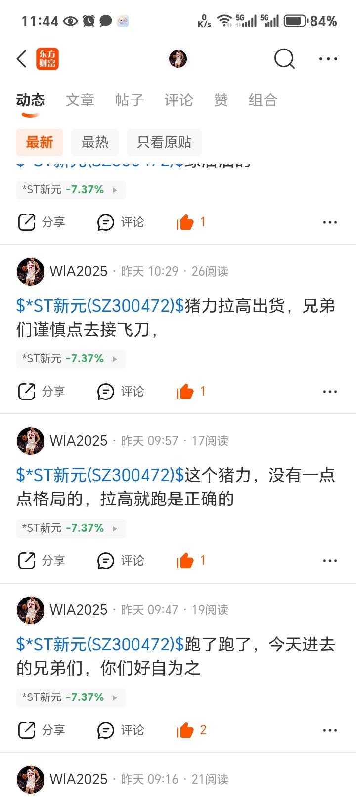 $*ST新元(SZ300472)$ 昨天上午就说了,叫大家不要去接飞刀,钱多多的敢死队员不听劝,怎么样,两天30个是啥资味