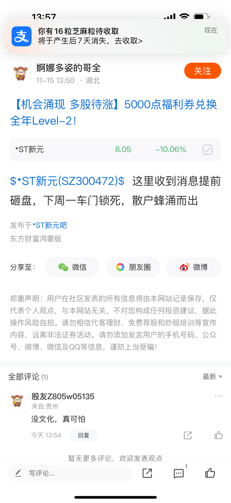 温馨提示: 1.根据《证券法》规定,禁止编造、传播虚假信息或者误导性信息,扰乱证券市场;2.用户在本社区发表的所有资料、言论等仅代表个人观点,与本网站立场无关,不对您构成任何投资建议。用户应基于自己的独立判断,自行决定证券投资并承担相应风险。《东方财富社区管理规定》
