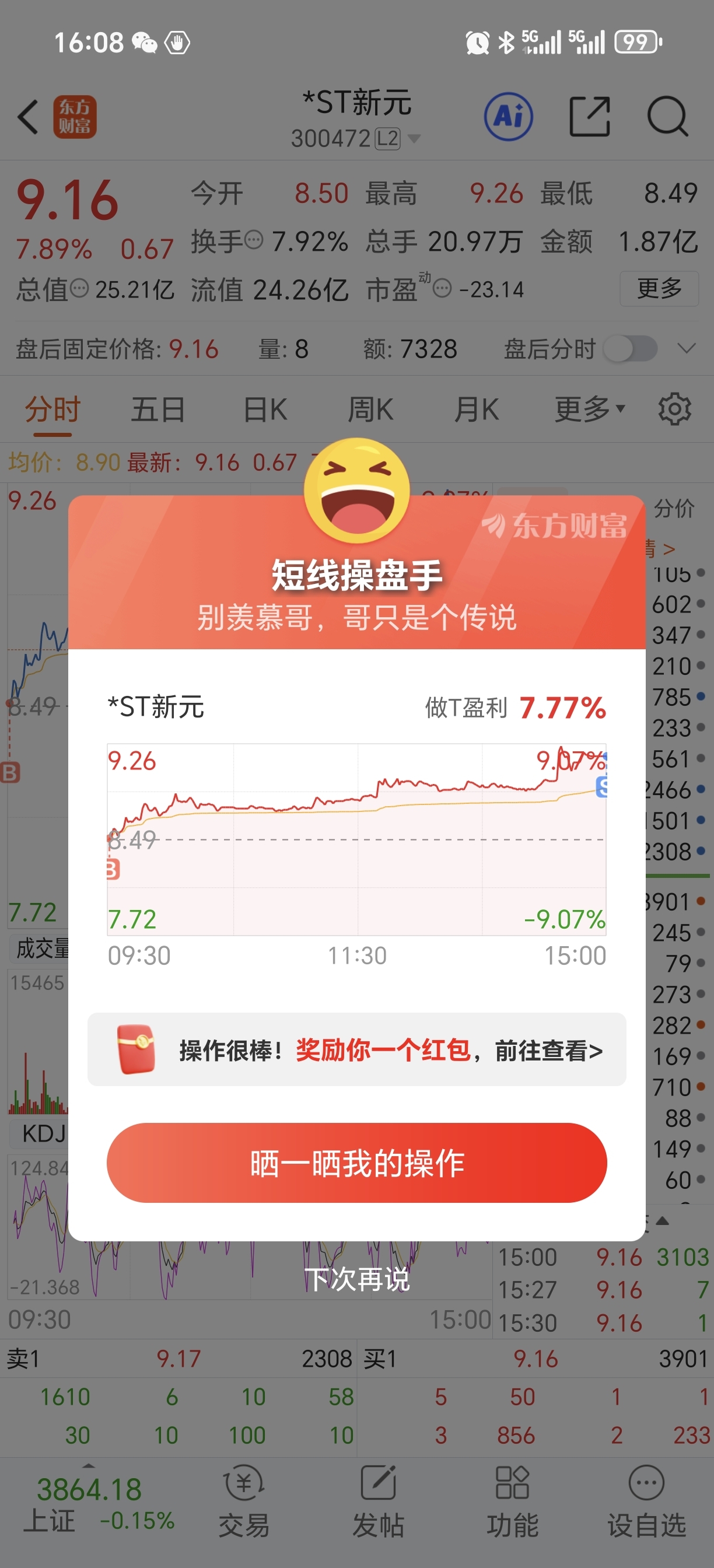 $*ST新元(SZ300472)$ 开盘价买收盘价卖这个T做得真完美