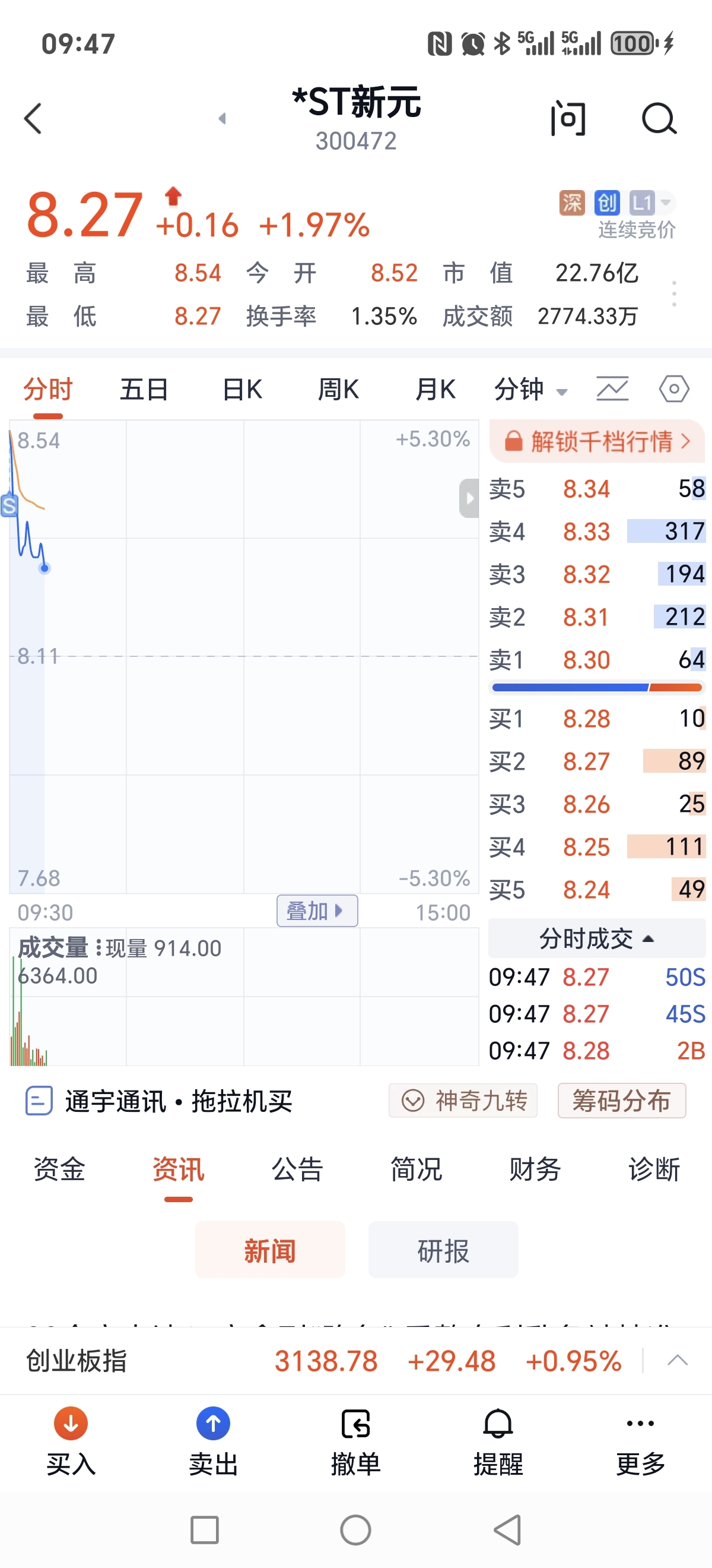 $*ST新元(SZ300472)$ 市况不佳,防守为主,竞价走了。