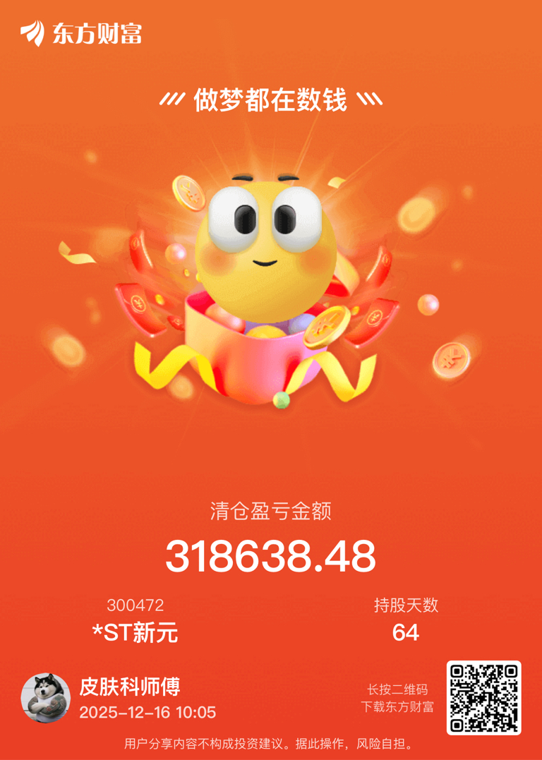 获利了结,已清仓,到了我的止盈线,不得不清楚,祝留下的发财..