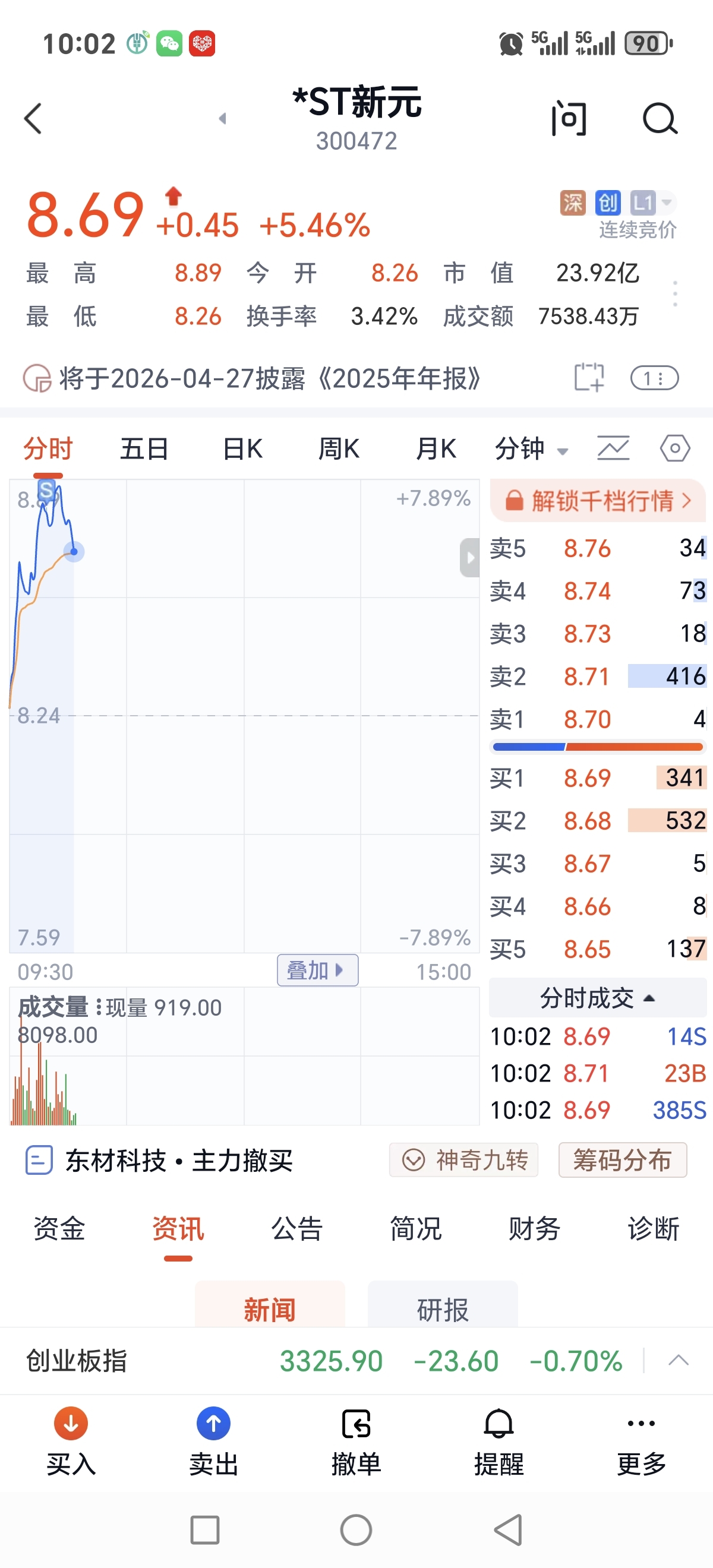 $*ST新元(SZ300472)$ 我已出仓,感觉良好!